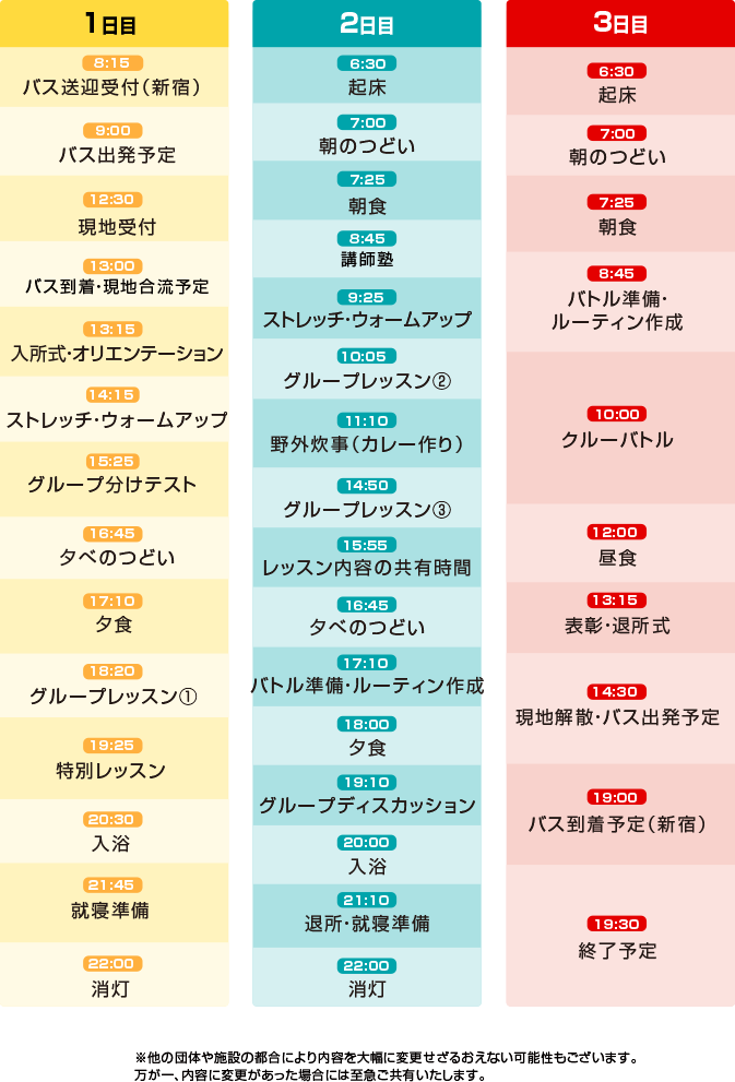 | ●宿泊先 | 国立那須甲子青少年自然の家 | ||||
