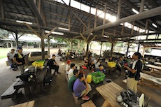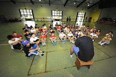 白浜少年自然の家に到着してまず館内の方にご挨拶、自己紹介を行って早速練習に移った。